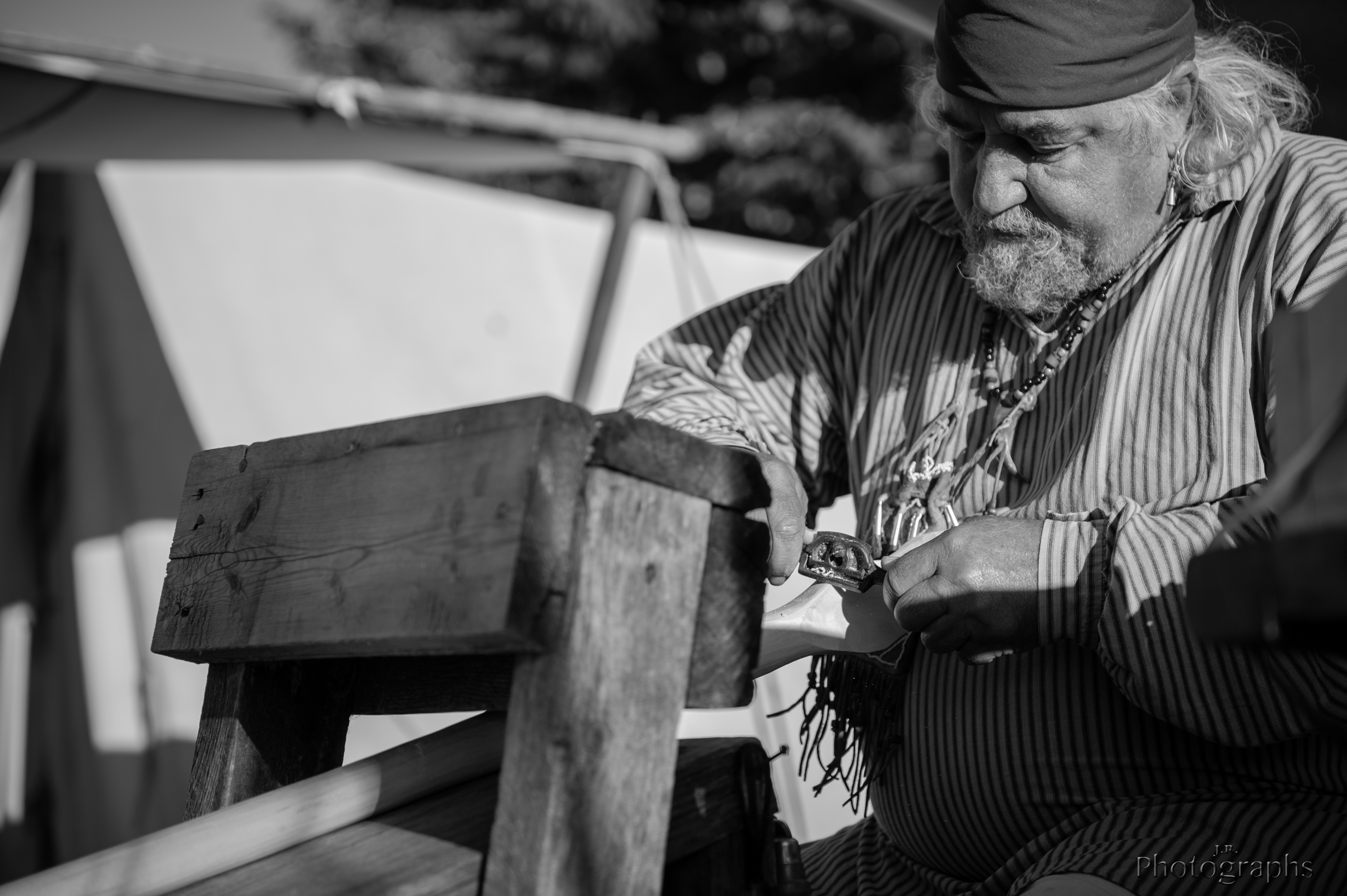 Here’s another photograph from the North Dakota State Fair. As you often see at state fairs, there always seems to be a form of reenactment that relates to the heritage and history of a state, as in this image right here. To be honest, I’m not the biggest fan of black and white photos, not because I don’t like black and white, but because I feel like converting photographs to black and white are a fad overused nowadays for no thoughtful reason whatever. Black and White photos evoke a unique feeling, amplifying a certain aspect of a photograph. To make a photo devoid of all colors is serious business: It simplifies the photo in order to amplify a certain mood, feeling, or subject in the photo. In short, I think, there has to be a sort of conscious purpose to turning a photo black and white, apart from “because it looks cool”; black and white photos “look cool” for a reason! And if you know your reason, then you’re that much better of a photographer. This is my belief. I will not feign to pretend as if I’m good at spotting out good reasons on why I’d want to turn a photo black and white. Hence, why I rarely do it. But in this instance, I think I found my good reasons to why I wanted to turn this photo black and white: Vivid colors would have been a distraction to the mood I wanted to evoke; the lighting was beautiful at this time, as you can probably infer by the shadow casted across his face, but I didn’t want the warm lighting to be the main aspect of the photo or for the nice light to overshadow what I really wanted to focus on (don’t get me wrong, this photograph also looks cool in color); and frankly I just wanted to evoke a certain feeling of age in the photo, so black and white seemed right (I could have also done Sepia Tone but meh), which amplifies the subject of this photo of an old man reenacting something that used to be done in the prairies of North Dakota decades ago. In short, I wanted the focus to be on the subject’s actions and the historical heritage of those actions.