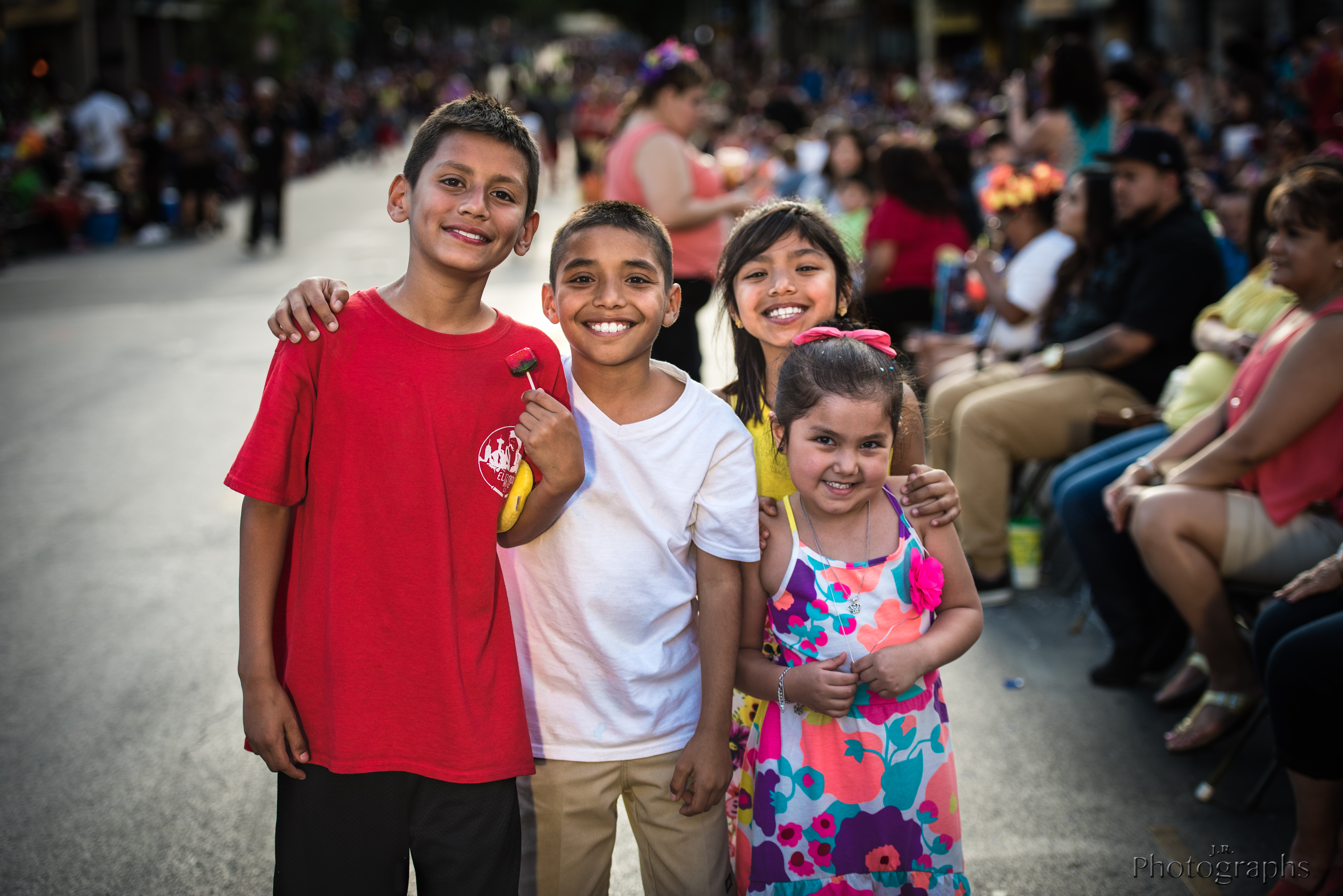 I gotta admit this is one of my favorite photos ever, simply because it radiates authenticity. I was walking down this closed-off street at the Fiesta Flambeau Parade in San Antonio when I came across these four kids, who I assumed were siblings, running up and down the street having a great, fun time throwing confetti at each other. I smiled kindly as I walked past these kids. Suddenly, the oldest girl ran up to me, pulling on my arm sleeve, “mister, mister! take a photograph of all of us please!” Well, I thought to myself, why not? As soon as I turned around, she had already gathered her siblings together and had all of them run back up to me. Without much thought or reflection, I put my camera up real quick and took a couple of snaps. I didn’t have them pose. I didn’t tell them to smile. In fact, I didn’t say anything, probably more perturbed at seeing this more of a distraction than an opportunity to get some good photos. As soon as I looked in my viewfinder to see the photos, I instinctively knew I captured gold. I was struck at the serendipity of this photograph. There’s no doubt in all adults that kids, with all their innocence, are the most genuine and authentic beings on this planet (I often wonder if this is one of the reasons why Jesus says in the Bible that we should be more like children). In this photograph, I captured sibling sincerity. None of their smiles are contrived. None of their poses are artificially orchestrated. It’s just kids being kids. No fakeness.